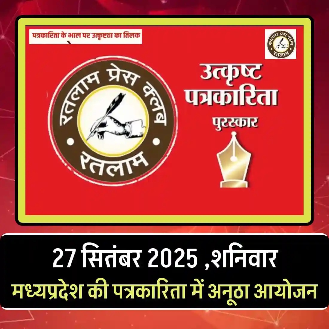 Ratlam News: रतलाम प्रेस क्लब पुरस्कार समारोह: 30 पत्रकार सम्मानित, पत्रकारिता के भाल पर सजा उत्कृष्टता का तिलक